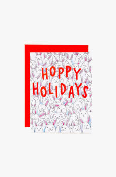 Send a some sweet holiday wishes to the lover in your life. This boxed set features a Christmas decorated in festive lights. Front of cards read, “Hoppy Holidays”.